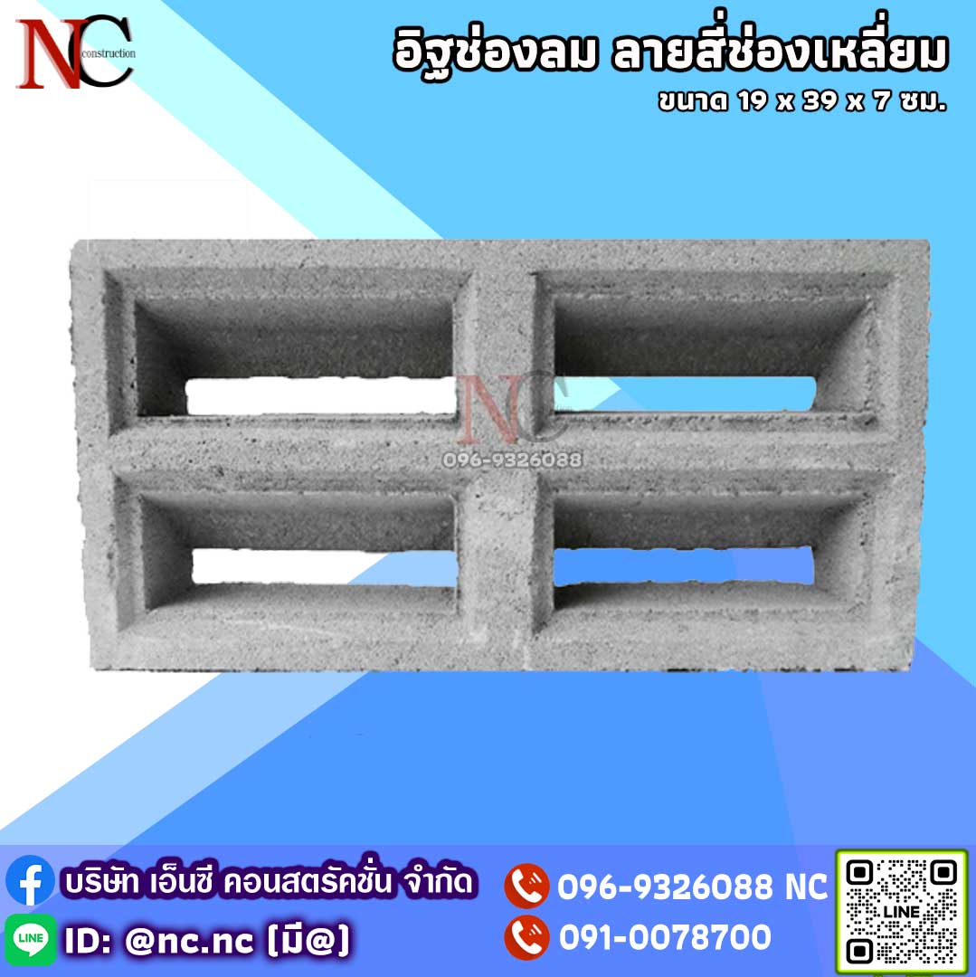 อิฐบล็อกช่องลมลาย สี่ช่องเหลี่ยม.