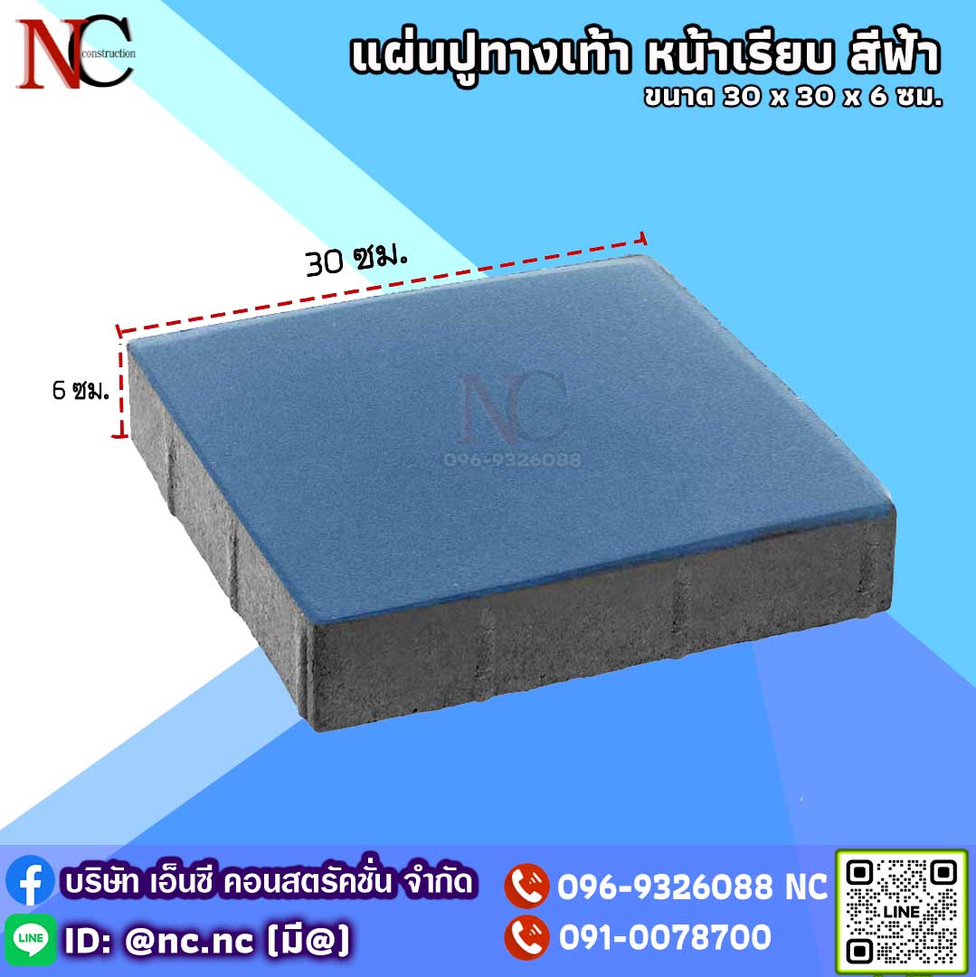 แผ่นทางเท้า 30x30x6 หน้าเรียบ สีฟ้า