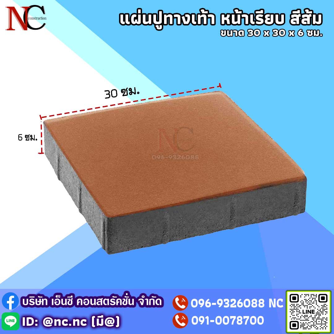 แผ่นทางเท้า 30x30x6 หน้าเรียบ สีส้ม